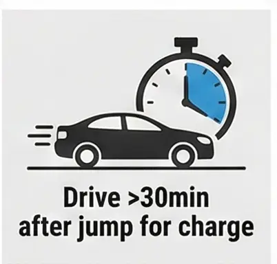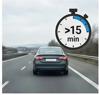 ✔ 시동만 걸면 충전 부족, 최소 **10~15분 이상 주행** 필요