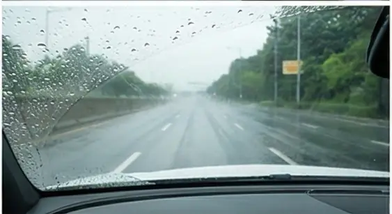 일부 제품은 와이퍼 지나간 자리에 미세한 물방울이 남는 경우가 있습니다. (야간 가로등 아래에서 눈에 띔)