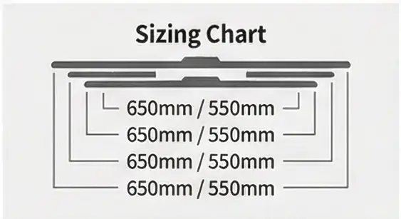 A. 차량 설명서 또는 온라인 쇼핑몰 조견표에서 차종별로 확인 가능합니다. (예: E클래스 W213 - 운전석 650mm, 조수석 550mm)
