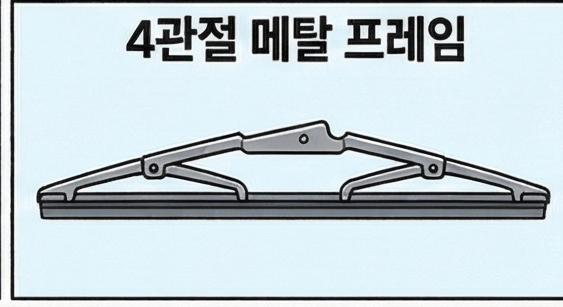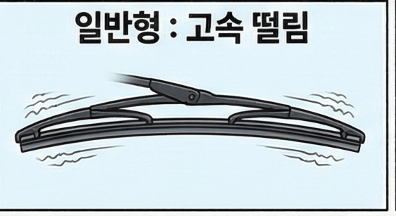 일반형 와이퍼: 가장 기본적인 형태로 가격이 저렴하지만 고속 주행 시 떨림 발생