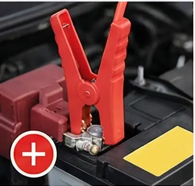 🔴 빨간색 클립 → 배터리 **양극(+)** 단자에 연결