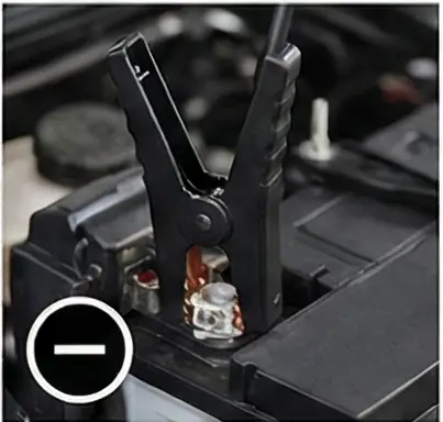 ⚫ 검은색 클립 → 배터리 **음극(-)** 단자에 연결