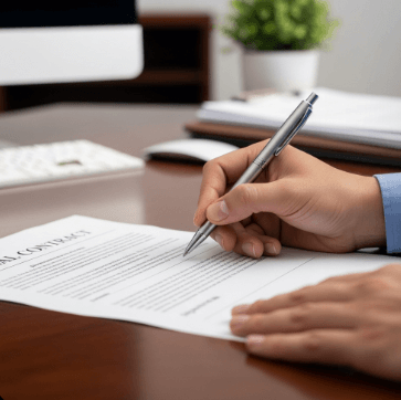 심사 승인 후 계약서를 작성하고 보증금 또는 선납금을 납부합니다.