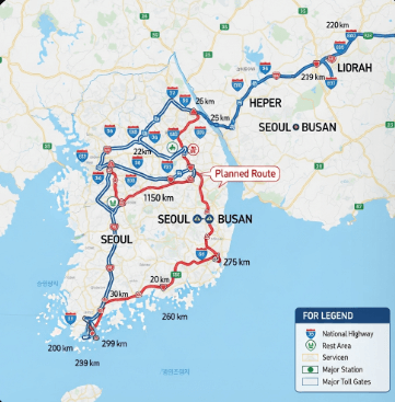 A. 거리에 따라 다르지만 서울-부산 기준 운전 시간은 약 5~6시간이에요. 하지만 배차 및 이동 대기 시간을 고려하면 보통 당일(오전 출고 시) 또는 익일 인수를 예상하는 것이 좋아요.