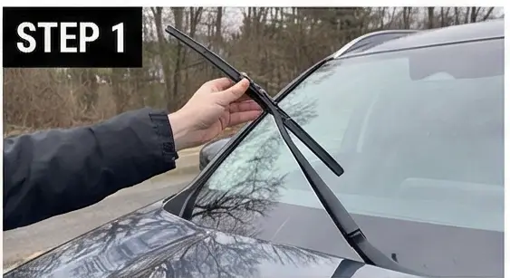 Step 1. 와이퍼를 앞 유리와 수직으로 세워요 (T자 모양으로)