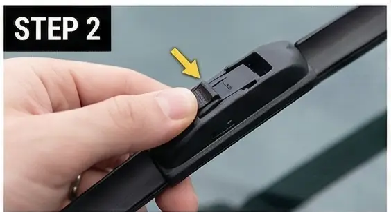 Step 2. 와이퍼 블레이드 중간에 있는 잠금쇠를 위로 올려요