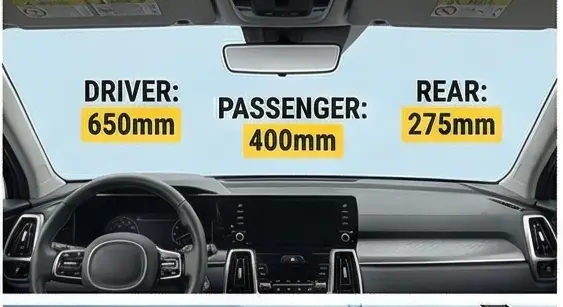 네, 운전석은 650mm, 조수석은 400mm로 다릅니다. 반드시 세트로 구매하거나 각각 규격에 맞춰 구매하세요.