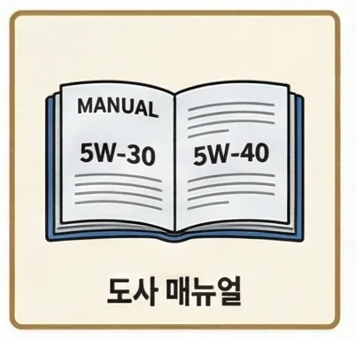 차량 매뉴얼에 표시된 점도를 확인하세요. 보통 5W-30, 5W-40 같은 형식으로 표기되어 있어요. 앞 숫자는 겨울 성능, 뒷 숫자는 고온 성능을 나타내요.