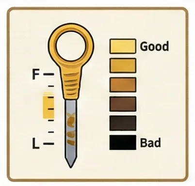 ✅ 오일 레벨이 F(Full)의 80% 정도면 적정