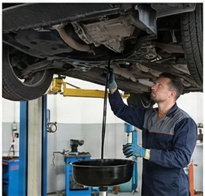 오일의 색상과 점도를 확인합니다. 맑은 갈색이면 양호, 검은색이면 교환이 필요합니다.