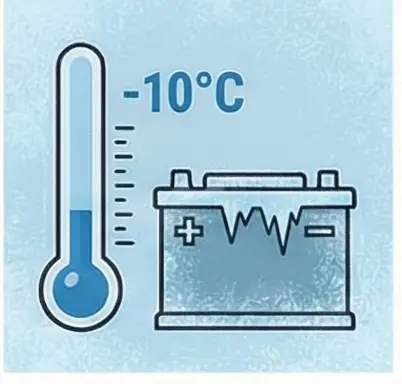 배터리는 온도에 매우 민감한 부품이에요. 25℃에서 100% 성능을 발휘하지만, 영하 10℃로 내려가면 성능이 **50% 이상 감소**합니다.