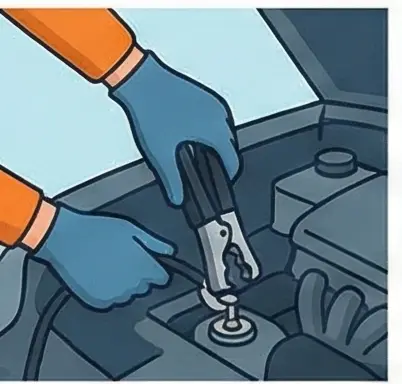 Step 3: 검은색 집게를 배터리 (-) 단자나 접지점에 연결하세요