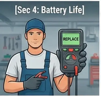 일반적으로 3~5년이지만, 방전이 2~3회 반복되면 그 전에라도 교체를 고려해야 합니다. 배터리 전압이 11.9V 이하면 즉시 교체하세요.
