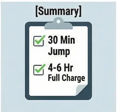 오늘은 점프 후 필요한 충전 시간부터 완전 충전 방법, 방전 예방법까지 알려드릴게요.