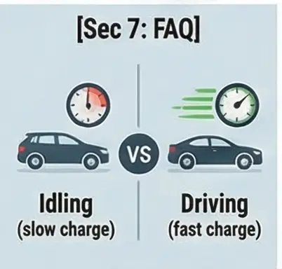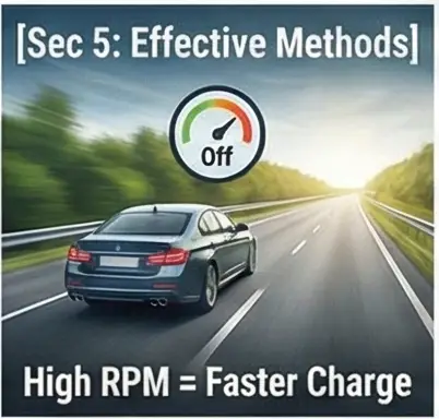 공회전보다는 실제 주행이 훨씬 효과적이에요. 엔진 회전수가 높을수록 발전기가 더 많은 전력을 만들어내거든요.
