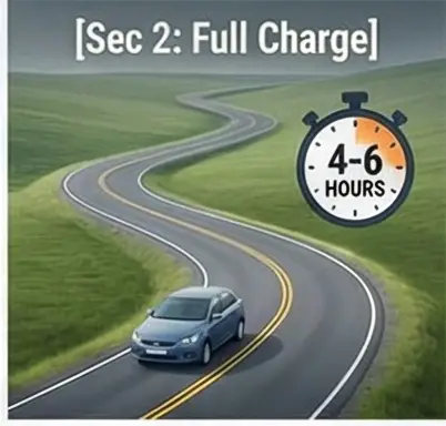 일반적인 80암페어 배터리 기준으로 4~6시간의 정상 주행이 필요합니다.