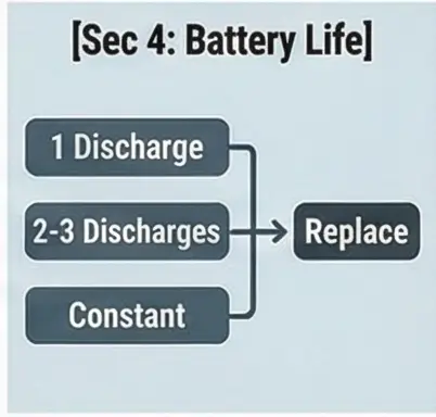 특히 짧은 기간에 2~3회 연속 방전되면 배터리 교체를 진지하게 고려해야 합니다.