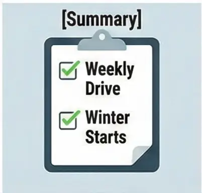기온이 낮으면 화학 반응이 둔해져 시동 능력이 떨어져요. 가능하면 실내 주차장을 이용하고, 2~3일마다 30분씩 시동을 걸어주세요.