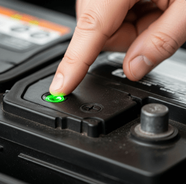 Step 4: 일부 차량 배터리의 경우 상단에 인디케이터가 있어요 (녹색=정상, 검정=충전필요, 흰색=교체). 모든 배터리에 있는 것은 아니니 없어도 걱정하지 마세요.
