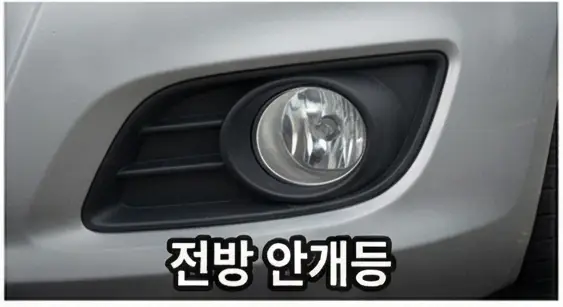 💡 전방 안개등: 앞쪽 범퍼 하단에 위치하며 주로 노란색 또는 흰색 빛을 냅니다