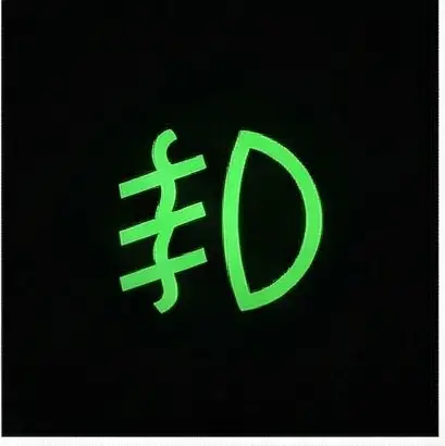 계기판의 색깔로 구분되는데, 초록색은 전방 안개등을, 주황색(노란색)은 후방 안개등을 의미해요.