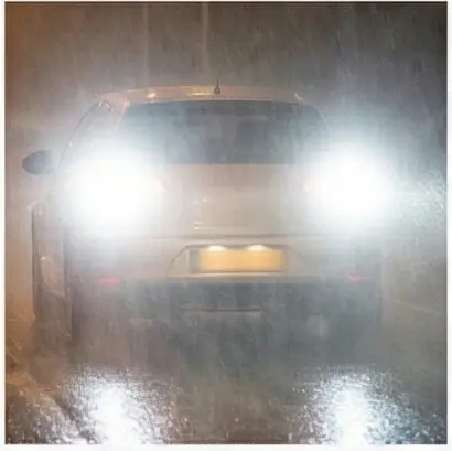 후방 안개등은 일반 후미등이나 브레이크등보다 2~3배 이상 강력하고 눈부신 빨간색 빛을 뿜어냅니다.