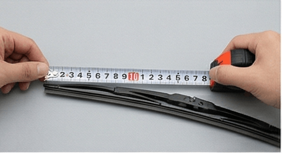 와이퍼 암을 들어올려 고무날 부분을 줄자로 재면 됩니다. mm 단위로 확인하세요.
