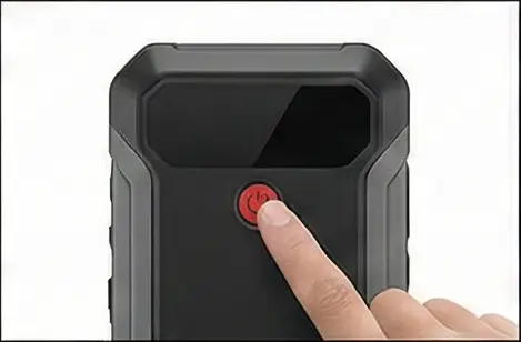 Step 5. 점프 스타터 전원을 켜고 시동 버튼을 누른 뒤, 차량 시동을 걸어요.