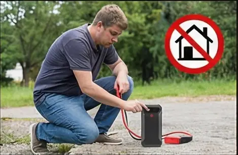 ❌ **실내에서 사용 금지**: 점프 스타팅 과정에서 인화성 가스가 발생할 수 있어요. 반드시 통풍이 잘 되는 야외에서 사용하세요.