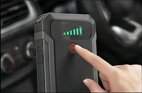 Step 1. 점프 스타터가 충분히 충전되어 있는지 확인하세요. LED 인디케이터로 배터리 잔량을 체크할 수 있어요.