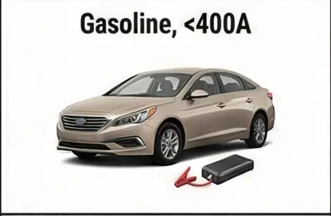 차량 종류에 따라 필요한 시동 전류가 달라요. 가솔린 차량은 보통 **200~400A**, 디젤 차량은 압축점화 방식이라 **400~600A 이상**의 제품이 필요합니다.