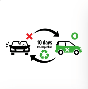 A. 정비 후 10일 이내 재검사를 받으면 수수료가 무료예요! 정비사실확인서를 받아서 재방문하세요.
