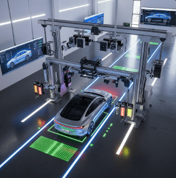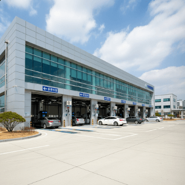 검사원의 안내에 따라 차량을 검사 라인에 진입시키면 동일성 확인, 외관검사, 기능검사, 배출가스 검사가 순차적으로 진행돼요.