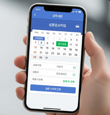 자동차검사 예약시스템: 인터넷(www.car.go.kr)이나 앱에서 차량번호로 조회할 수 있어요.