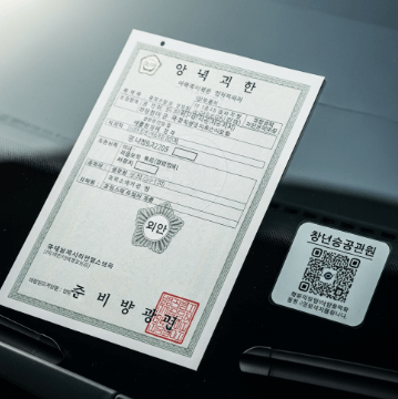 받은 검사필증은 차량 앞 유리창 안쪽 우측 상단에 부착하세요.