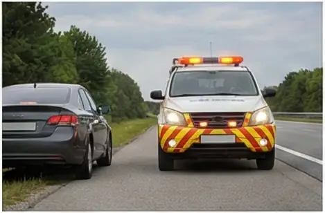 즉시 비상등을 켜고 갓길이나 비상주차대로 이동 후 보험사 긴급출동을 요청하세요. 차량 뒤 100m 지점에 안전삼각대를 설치하고 가드레일 밖에서 대기합니다.