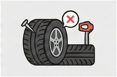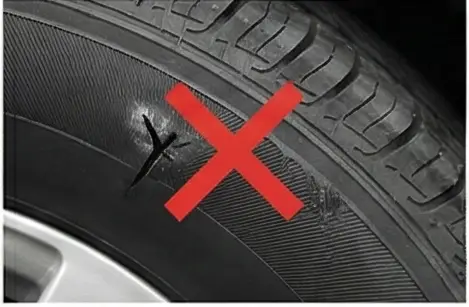 타이어 측면은 접지면보다 약해서 수리 후에도 안전성을 보장할 수 없기 때문입니다. 측면 펑크는 반드시 타이어 교체가 필요합니다.