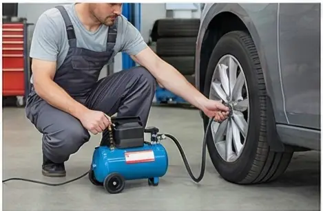 보험 긴급출동이나 카센터 수리 시 공기압까지 함께 조정해 줍니다. 셀프로 수리했다면 가까운 주유소나 카센터에서 무료로 맞출 수 있습니다.