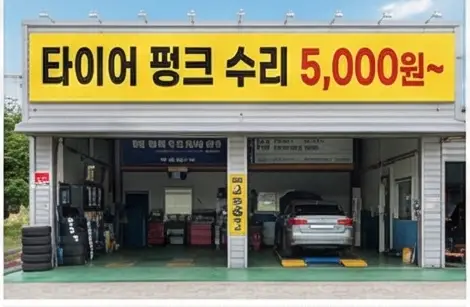 타이어 펑크 수리는 생각보다 저렴합니다. 카센터나 공업사에서 간단한 펑크 수리 시 평균 5,000원~15,000원 정도면 해결됩니다.