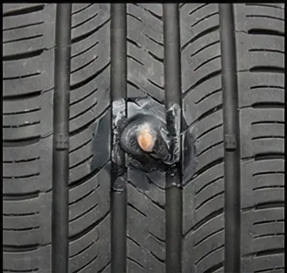 🟢 타이어 트레드(접지면) 중앙 부위 펑크